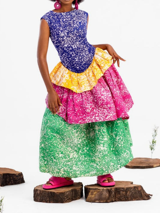 Elegant Sleeveless Layered Patchwork Maxi Dress
