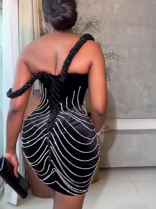 Fashion Net Yarn Hot Diamond Suspender Mini Dress