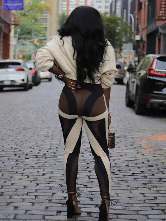 Fashion See-through Wide Lapel Long Sleeve Two Pieces Set