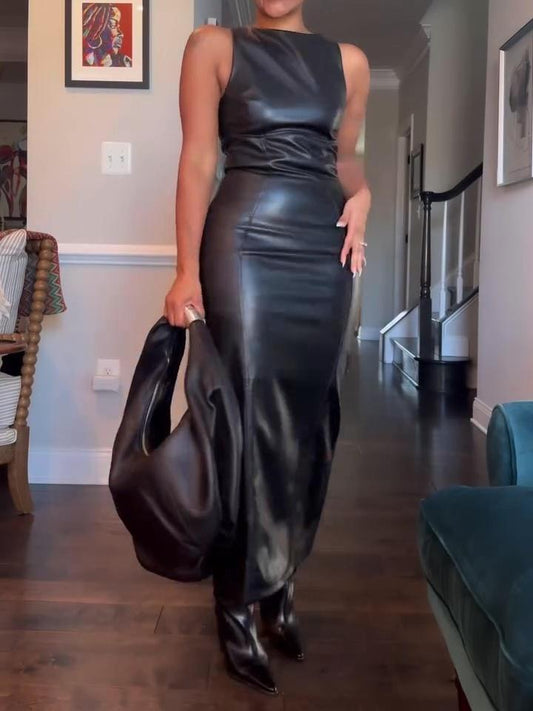 Sold outFaux PU Leather Bodycon Maxi Dress