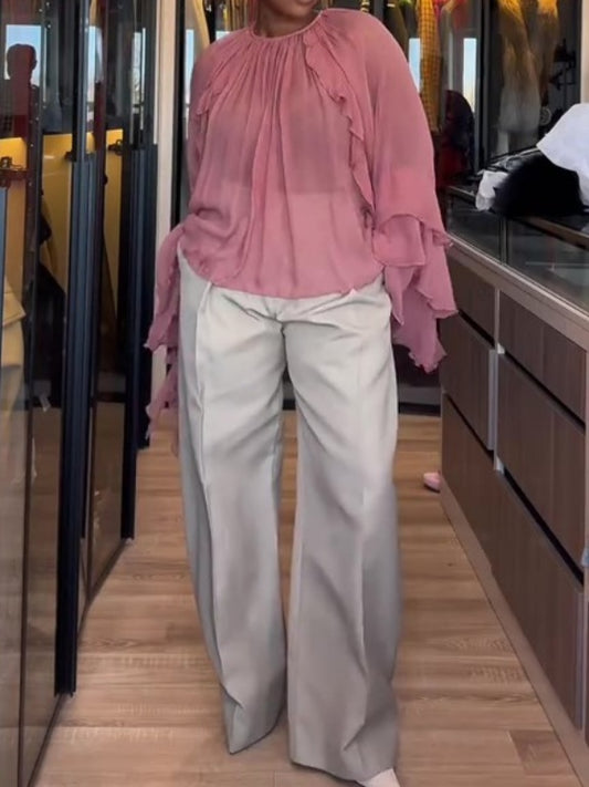 Sold outPink Ruffled Chiffon Blouse
