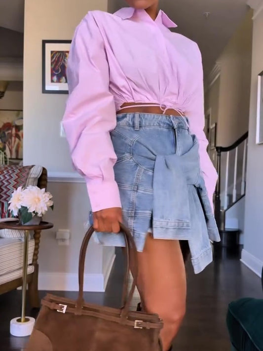 Sold outPink Lace-Up Cropped Shirt