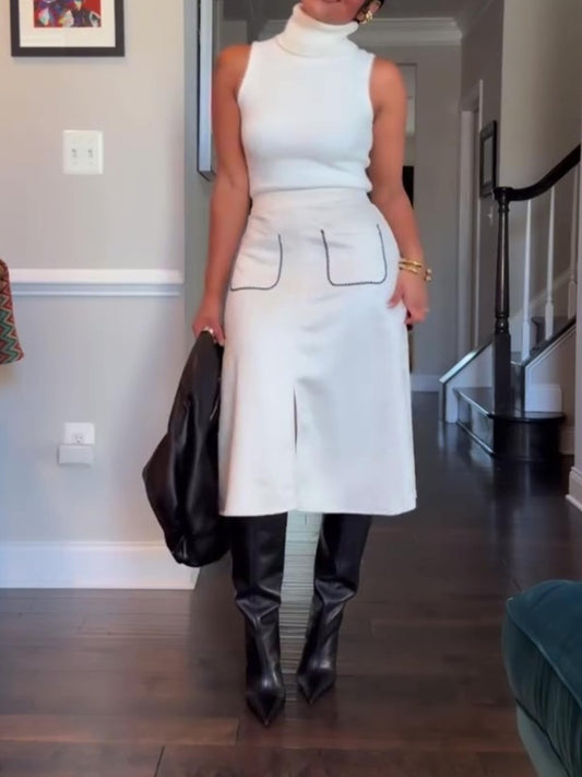 Sleeveless Mock-Neck Sweater A Line Midi Skirts Set
