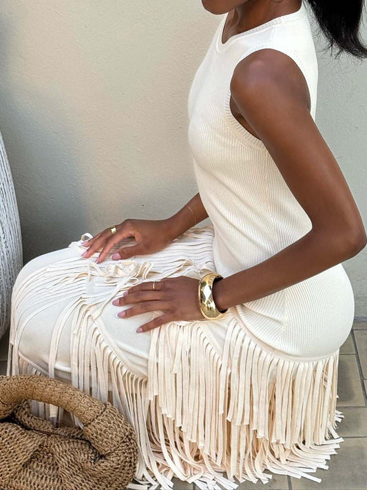 Sleeveless Tassel Hollow Patchwork Mini Dress