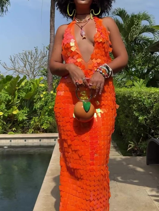 V-Neck Elegant Wide Sleeve Maxi Dress