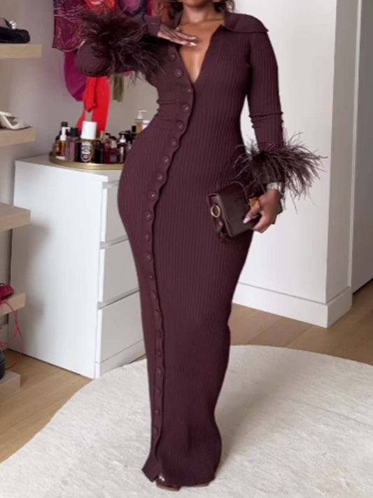 Fashion Fur Collar Off-shoulder Neck Slim Evening Dress