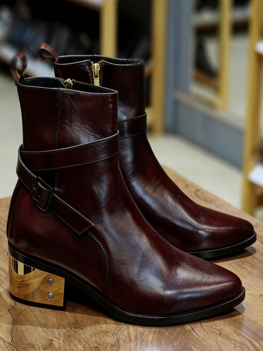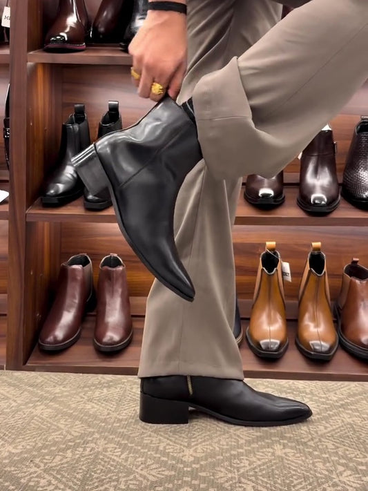 Men's Italian Leather Chelsea Boots With Both Side Chain