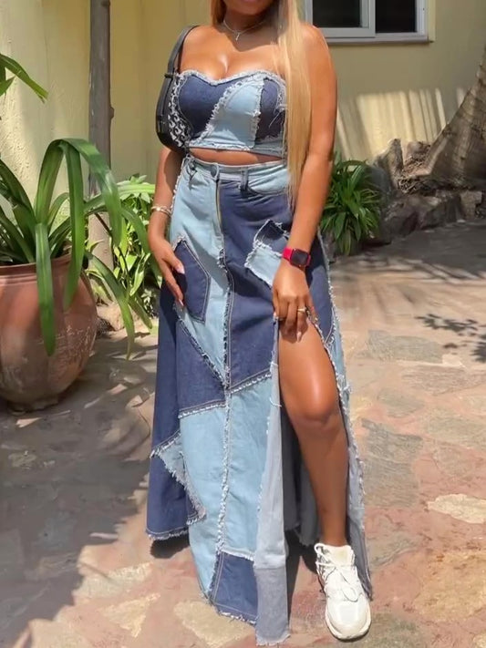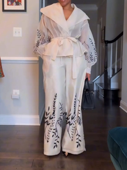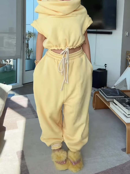 Collarless Curved Hem Faux Leather Two Pieces Set