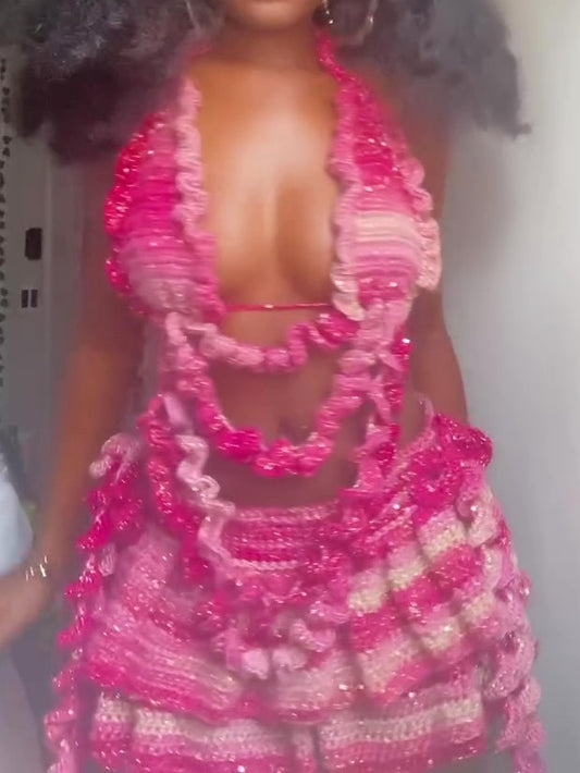 Crochet Hangneck Top And Mini Skirt Set