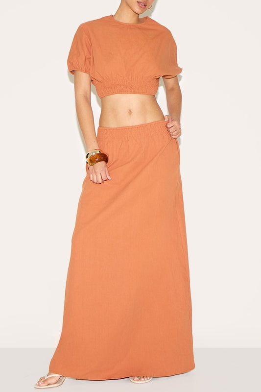 Crop Top Low Rise Maxi Skirt Two Piece Set