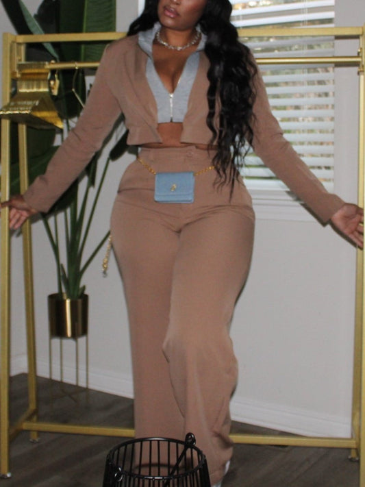 Cropped Jacket And High-waisted Pants Two-piece Set