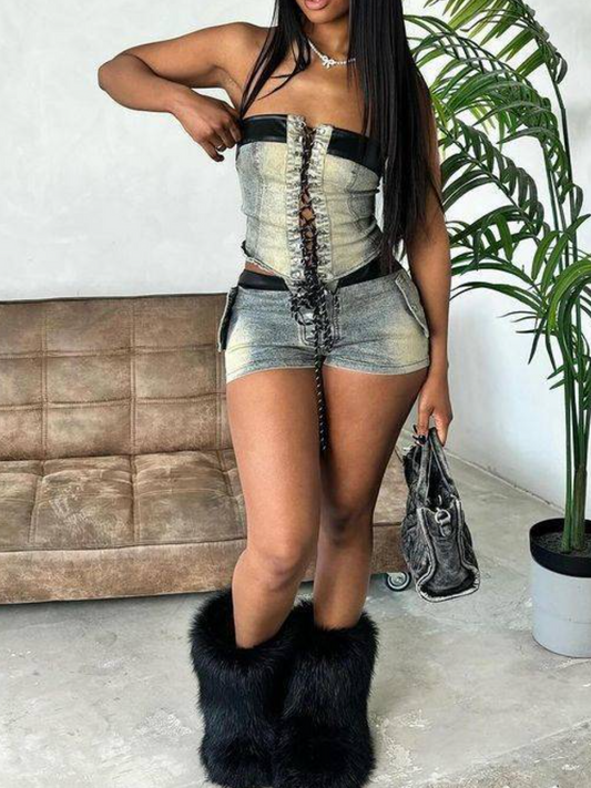 Dazzle Rhinestone Denim Skirt 2pc Set